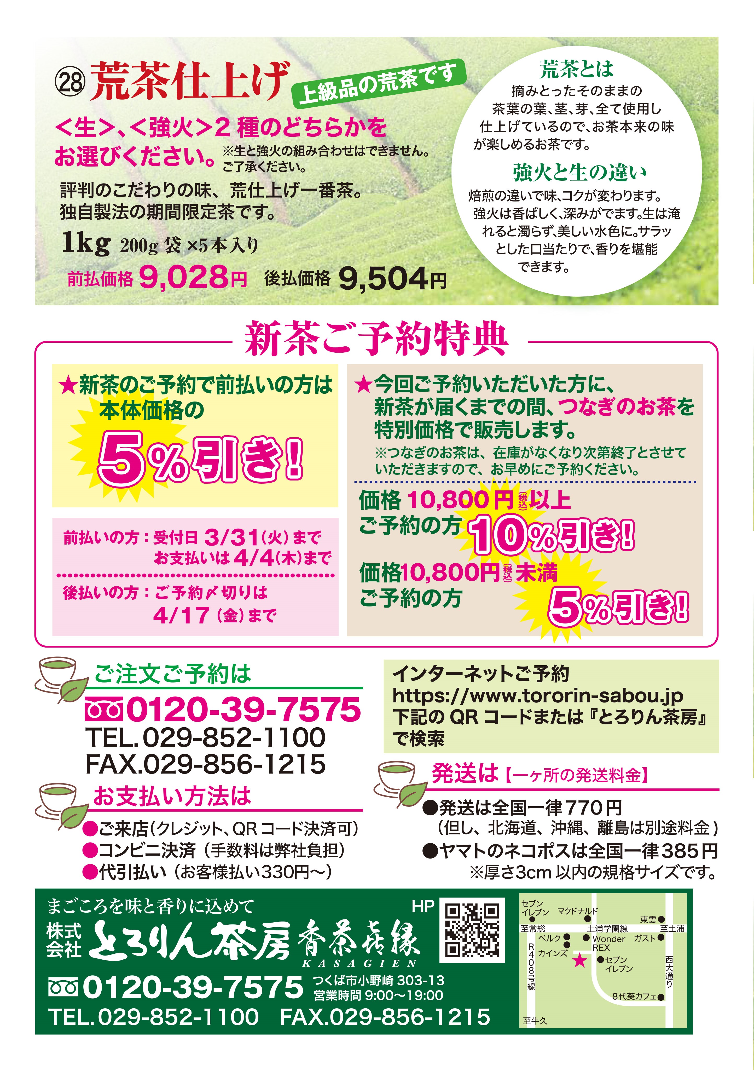 ご予約を頂いたお客様は、つなぎのお茶がお得に買えますのでお気軽にご連絡頂ければ『つくば市土浦市周辺無料配送』致します。